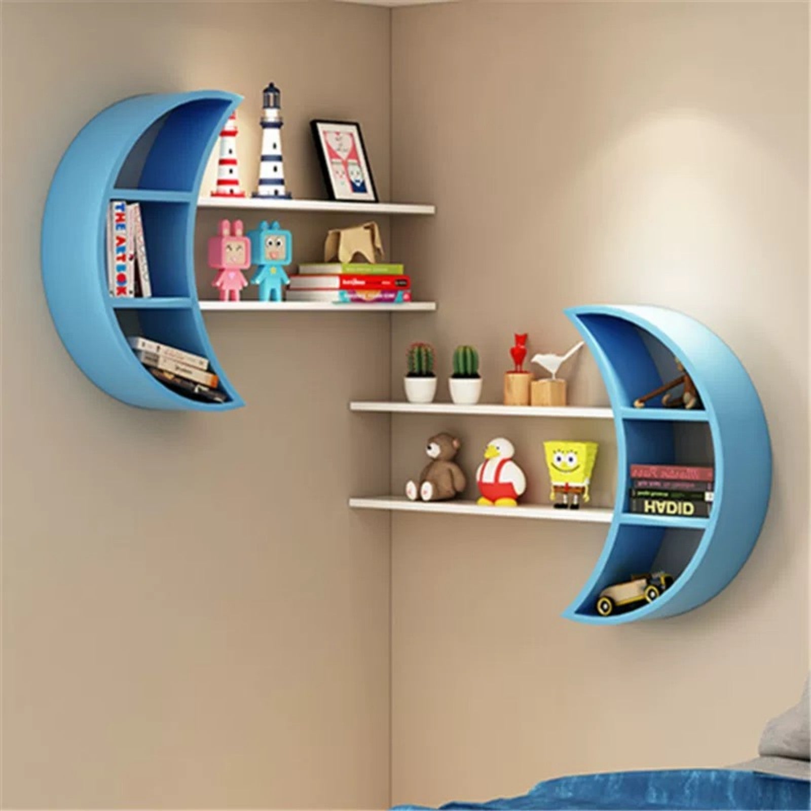 Blue Moon Wall Bookshelf – Modern Kids Room Corner Storage