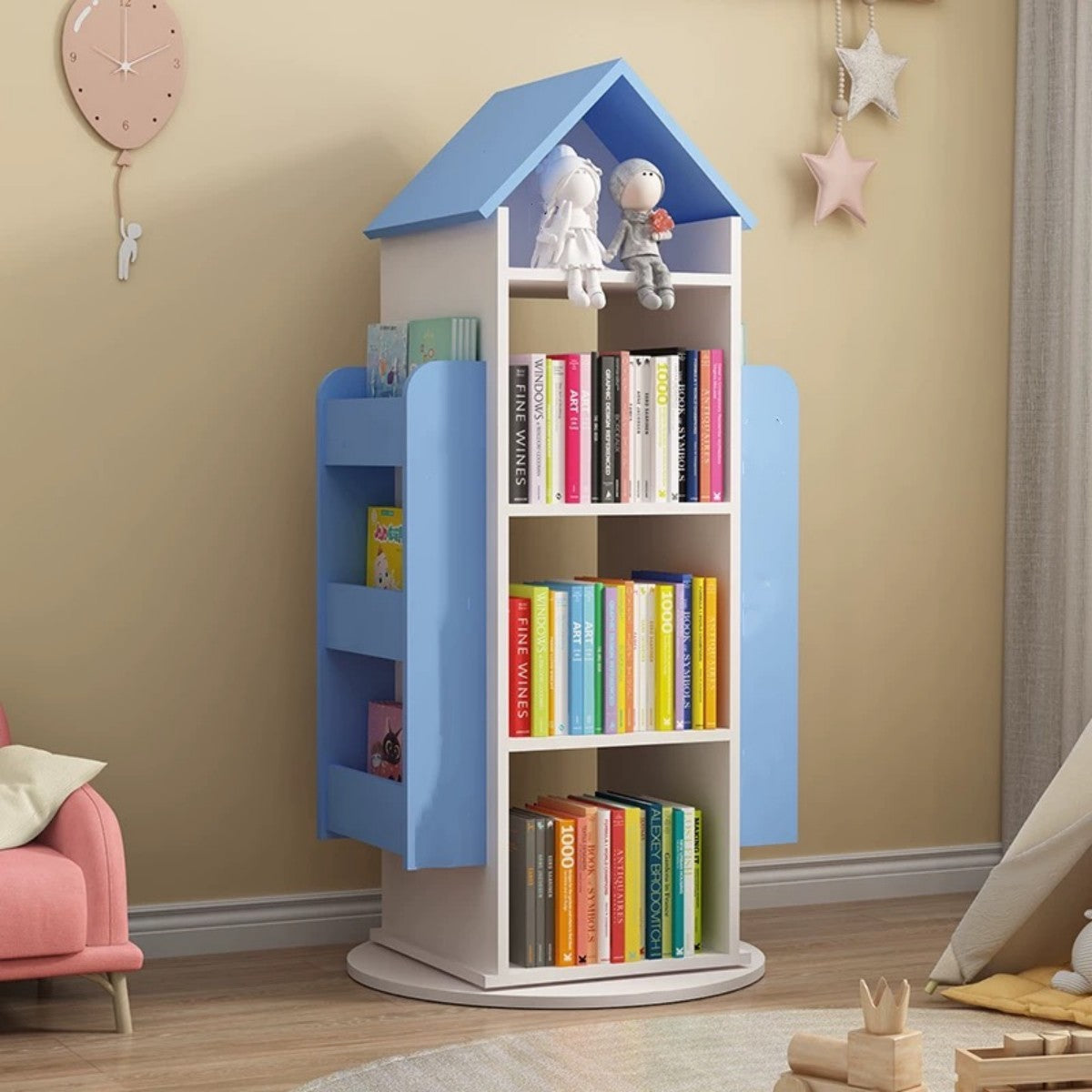 Blue Roof Rotating Bookcase – House Shaped Kids Bookshelf
