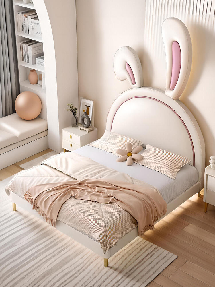 Add a magical touch to your child’s bedroom with this charming Bunny Ears Kids Bed, featuring an oversized plush headboard with 3D bunny ears that bring storybook style to life. Designed with soft curves, pastel accents, and cozy upholstery, this Bed blends comfort with imagination — the perfect centerpiece for a dreamy nursery, girl’s room, or whimsical teen space.
