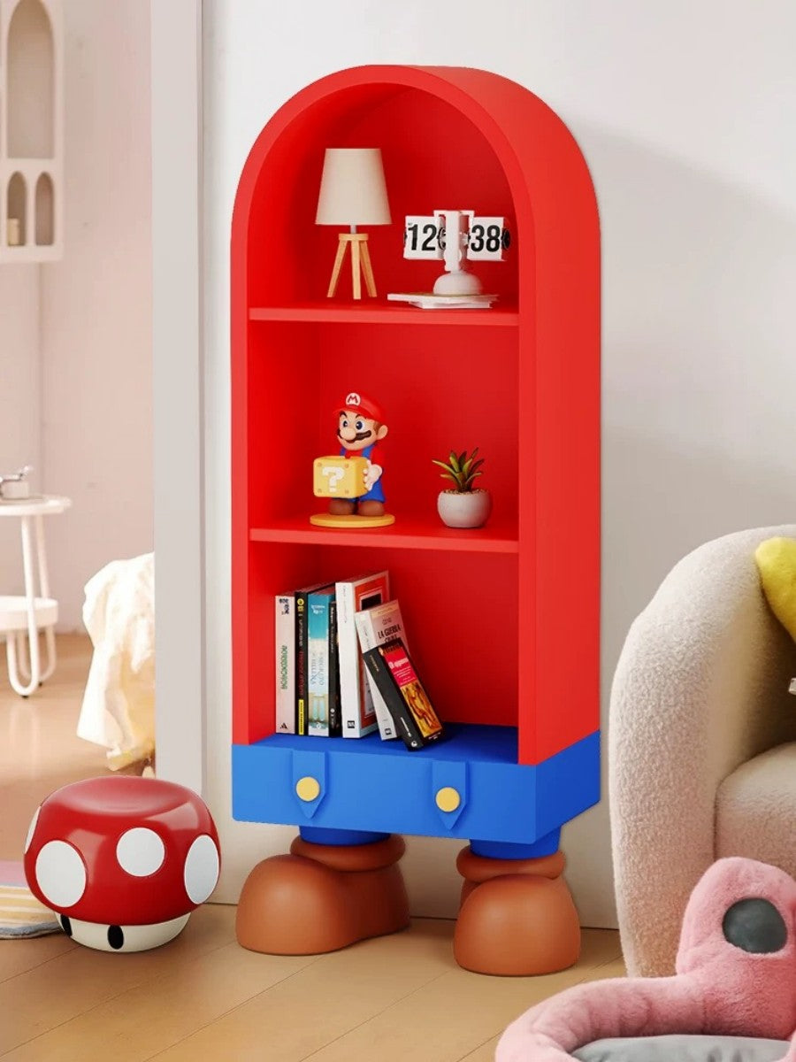 Make storytime extra fun with this Cartoon Character Bookshelf. Featuring a bold red arch, blue drawers, and brown feet, this bookcase is inspired by classic cartoon heroes and brings playful personality to any child’s room. Two open shelves offer plenty of space for books and décor, while the bottom drawers provide hidden storage for toys or art supplies. Sturdy and easy to clean, this bookshelf is a standout piece for themed bedrooms or play areas.