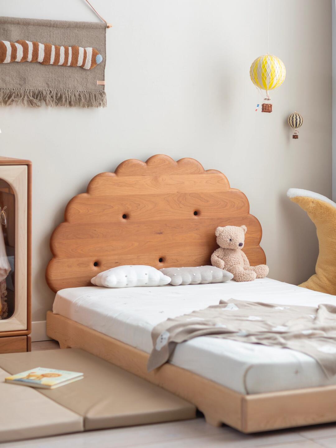 Cloud-Inspired Wooden Bed – Cozy & Stylish Low-Profile Kids’ Bed