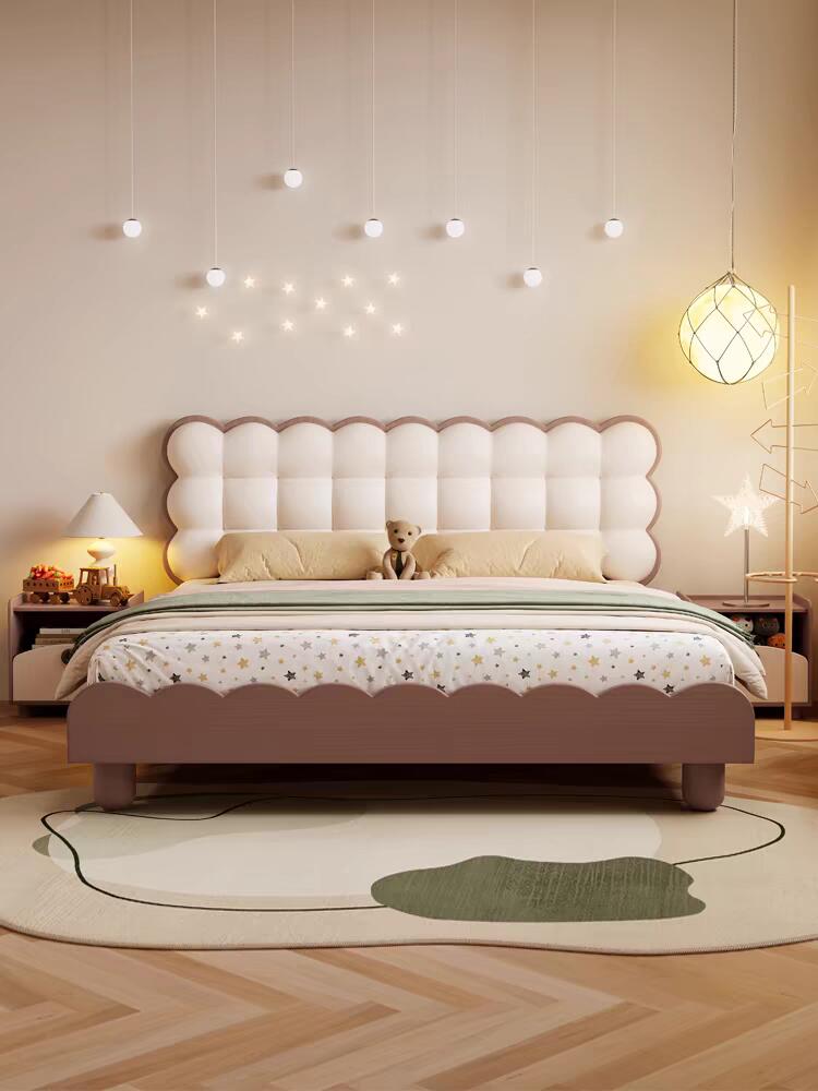 Transform your bedroom into a dreamy retreat with this elegant cloud-inspired bed! Featuring a softly padded, tufted headboard with a charming cloud-like design, this bed brings a perfect blend of comfort and aesthetics. The scalloped wooden frame adds a whimsical touch, making it an ideal centerpiece for both kids' and adults' bedrooms.