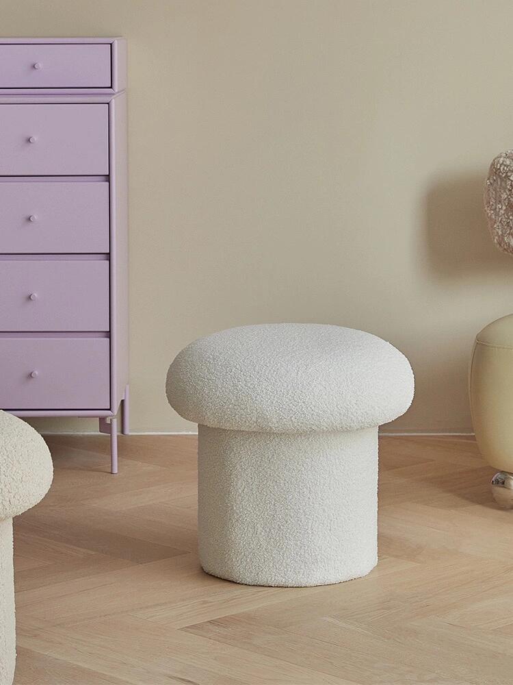 Minimalist Mushroom Bouclé Stool – Cozy Plush Accent Seating for Living Room or Kids Room