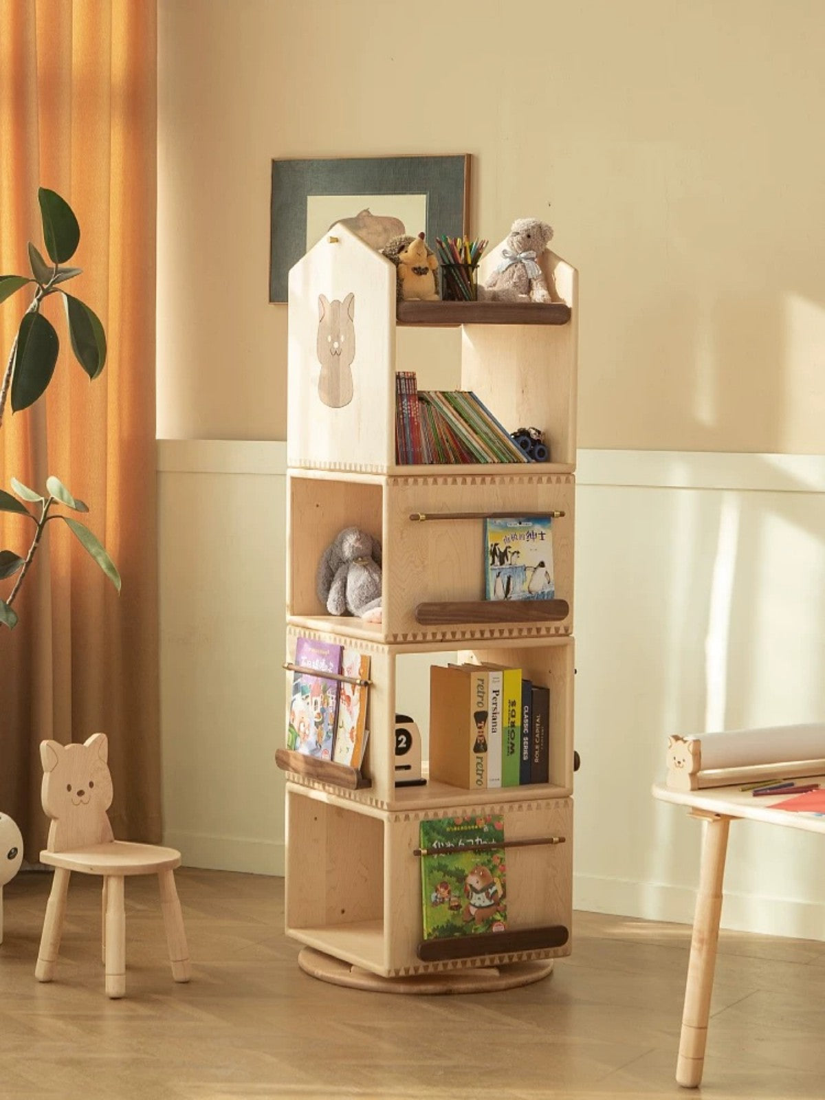 Rotating Wooden Kids Bookshelf – Animal Theme Storage Organizer