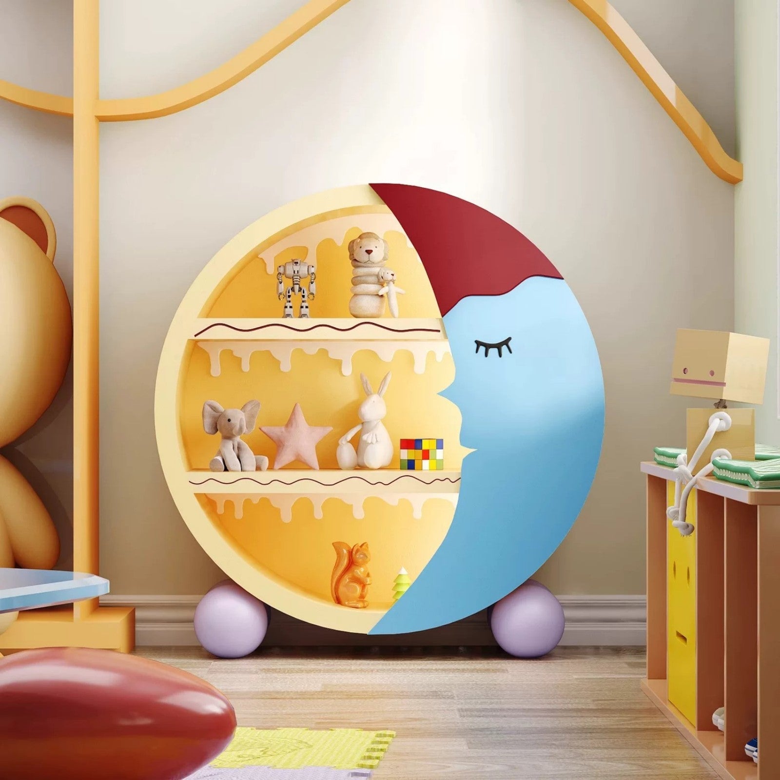 Round Moon Face Kids Bookshelf – Cute Cartoon Display Storage