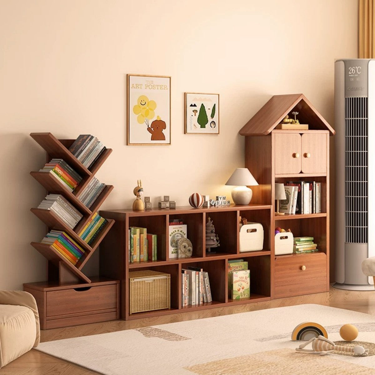 Create a warm and organized learning space with this Wooden Montessori Bookshelf Set. With a mix of open cubbies, a playful house-shaped shelf, and a unique tree bookshelf, this set is perfect for storing books, toys, and educational materials. The natural wood finish complements any décor, while the varied shelving heights make it accessible for kids of all ages. Ideal for bedrooms, playrooms, or homeschooling areas, this bookshelf set fosters independence and a love for reading.